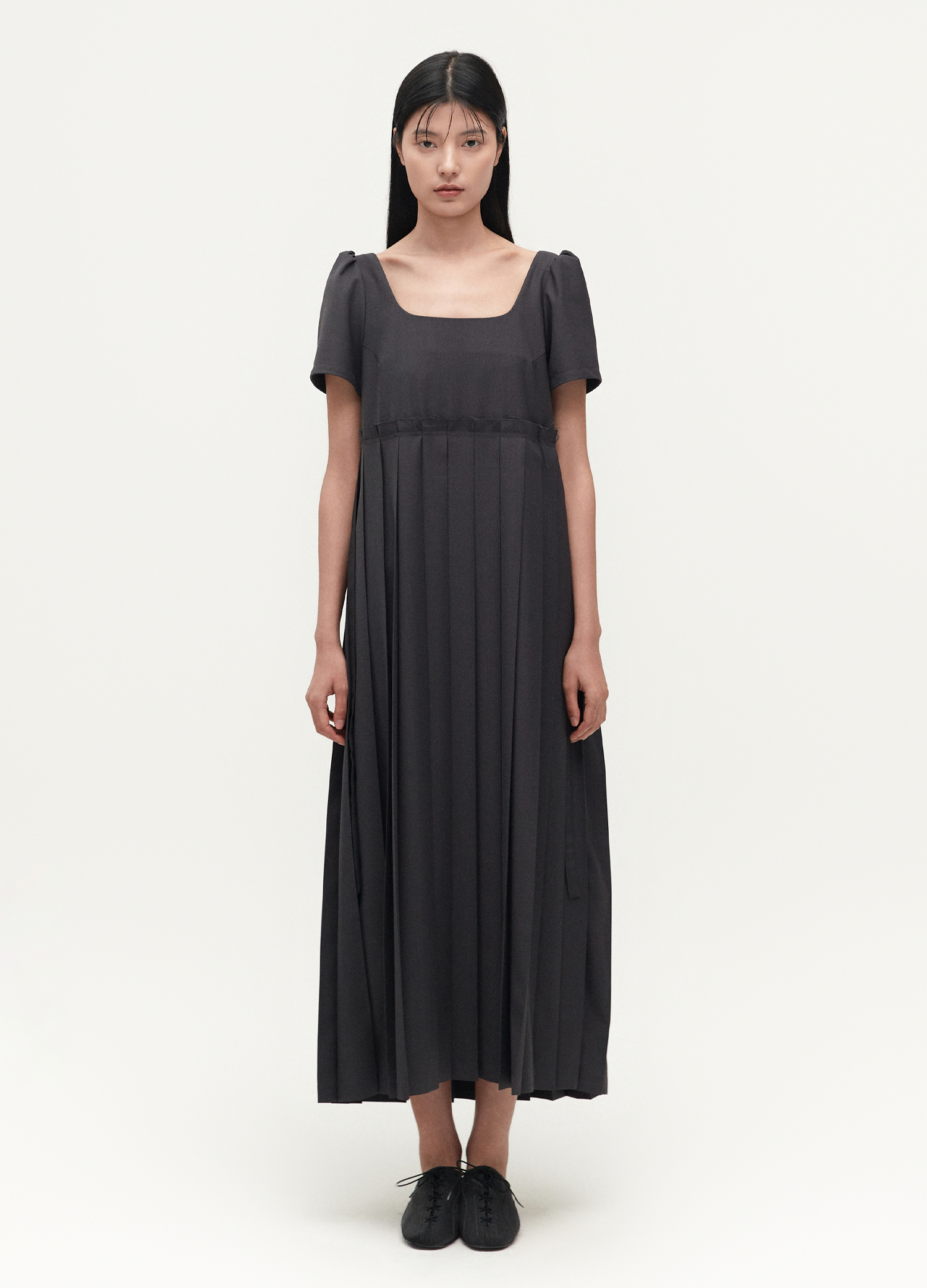 Raw edge tuck detailed dress (Grey)